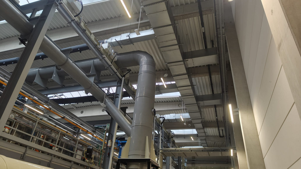 Dla nowo budowanej hali galwanizerni na terenie zakładu firmy Heiche Polska Sp. zo. o. w Stanowicach zamontowano nowy układ wentylacji nawiewnej obsługiwany przez centralę wentylacyjną o wydajności 60 000 m3/ z nagrzewnicą gazową oraz wymiennikiem glikolowym, wykorzystującym ciepło/chłód odpadowy z produkcji.