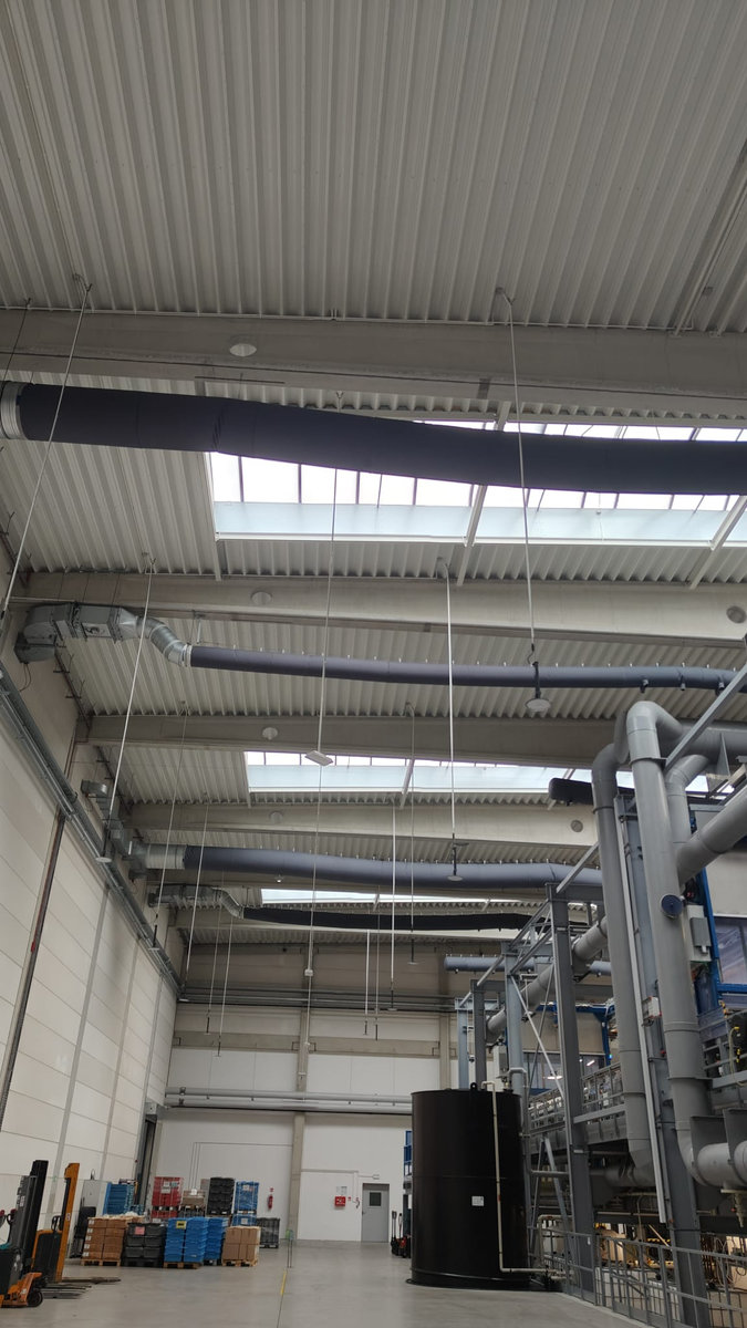 Dodatkowo w ramach zadania wykonaliśmy wentylację mechaniczną w sprężarkowni oraz oczyszczalni z możliwością wykorzystania ciepła odpadowego ze sprężarkowni do ogrzania pomieszczenia oczyszczalni.